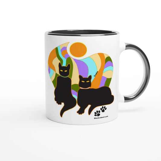 Moon Cats White 11oz Ceramic Mug with Color Inside Ceramic Black